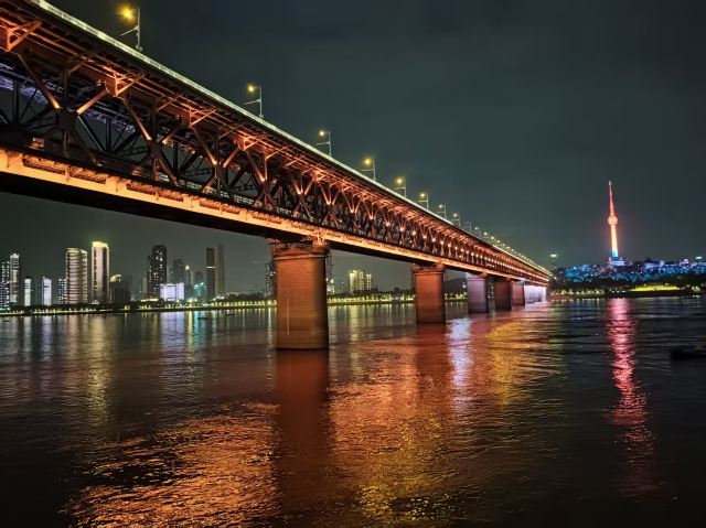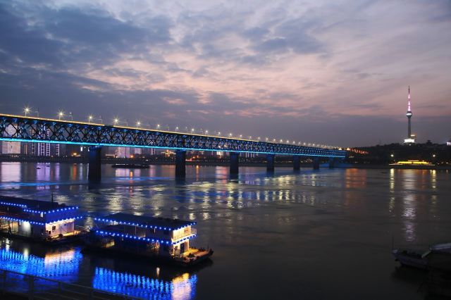 5分 超棒武汉长江大桥是我国万里长江第一桥,也是新中国首座公铁两用桥,采用“管柱钻孔法”解决深水基础难题,主跨128米,上层公路桥,下层双线铁路桥。夜景特别漂亮。