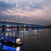 武汉长江大桥,是长江上修建的第一座桥梁,也是武汉的地标性建筑。大桥横跨于武昌蛇山和汉阳龟山之间,1957年建成。桥的两端建有民族风格的桥头堡。大桥的建设得到了苏联政府的帮助,整座大桥充满了厚实的俄式风格。