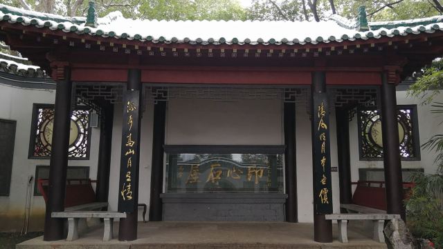 今天有幸来到这个地方。漫步进入景区大门,古琴台规模不大,但题刻颇多,其中以宋代书法家米芾所题“琴台”二字尤为知名。古琴台虽无江南庭院构思之精巧,除殿堂主建筑外,还有庭院、林园、花坛、茶室等,布局精巧、层次分明。但这里古木参天,亭台楼阁像散落的珍珠,相映在苍松翠柏之中,古色古香,又多了几份江南园林的风趣。在主殿堂前的琴台,为汉白玉所筑,相传为俞伯牙抚琴之处,颇值细细品味。知音树,旷世知音,知音同心锁,伯牙抚琴觅知音,印心石屋,琴台碑廊等展物都体现刻画了两千多年前俞伯牙与钟子期结为知音的故事。