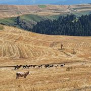 天山麦海:是江布拉克壮观奇景之一。千百年来,她醉卧江布拉克,美得让人心动。她地处天山山脉,平均海拔1700米的前山和丘陵地带,与雪山交相辉映。