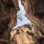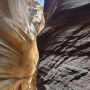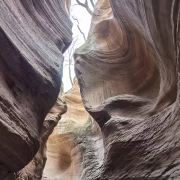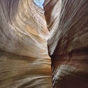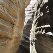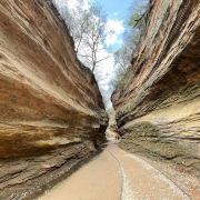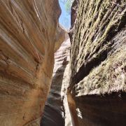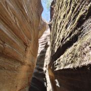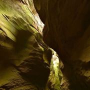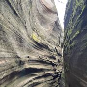 桦树沟是甘泉大峡谷中景色最美、最精华的部分,被誉为“摄影家的天堂”。峡谷全长约300米,高20到25米,谷底最宽处5米,最窄处仅为20厘米。在正午时分,阳光直射进谷,谷内景色美轮美奂,光影交织,色彩斑斓。