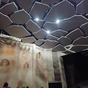 《延安保育院》还运用当代先进的舞美、灯光、音效等舞台理念和设备,创造出身临其境的梦景。它采用整体倾斜式、分体90°垂直升降的全自动舞台、600多个震动座椅、全方位环绕音响以及高科技的三维成像技术为观众呈现了巍巍宝塔山、奔腾延河水、激烈的战争、浪漫的星空等延安时期的多维战地时空,观众既有历史的临场感,又有现实的震撼感。