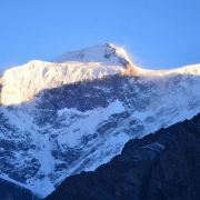 托木尔峰地区壮观的景色当推汗腾格里冰川,它是托木尔峰800多条冰川中较长的一条,也是世界八大山谷冰川之一。冰川之上有无数水深莫测的冰面湖、数百米深的冰裂缝,还有浅蓝色的冰融洞、水晶墙、冰塔、冰椎、冰蘑菇、冰桌和冰下河等冰川奇境。这里的天气多变,有时一片晴朗,突然辟雷一声震天响,抬头望去,不远处的雪尘滚滚飞扬,飞泻而下,掀起数十米至数百米高的雪浪。