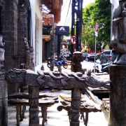 观海寺创建于北魏,属五台山历史悠久的古刹。寺体坐北向南,现存有大雄宝殿、金刚菩萨殿,两侧配以僧房,围成一处方院。大雄宝殿正面3间,前装板壁,后装格扇,装修较为特殊;金刚菩萨殿正面3间,殿内的金刚菩萨造型奇特,黑脸黑身,伟岸高大,右脚登地,左腿屈起,脚踩风火轮。菩萨的脚腕、手腕戴镯,双耳戴环,腿上筋肉暴起,臂上缠绕长蛇,面部一副坚毅刚直的表情。头上又有头,叠至九个,伸出十八臂,皆执法器,所以此像又称“九头十八臂黑金刚菩萨”。