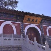 黛螺顶坐东面西,中轴线上依次排列着牌楼、天王殿、檀殿、五方文殊殿和大雄宝殿。其中,天王殿坐东向西,单檐硬山顶,塑有四大天王,气势恢宏。大雄宝殿前有一松一柏,被乾隆皇帝称为千年不老松,守护着大殿,见证着历史的变迁。