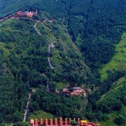 5分 超棒黛螺顶,是五台山历史悠久,闻名遐迩,别具一格的一座古刹。黛螺顶,始名青峰,寺宇初名佛顶庵,明万历二十年到清代乾隆十五年 ,曾名大螺顶,乾隆十五年改名为黛螺顶,一直沿续至今。黛螺顶始建寺,是在唐朝,唐朝具体那一年还待进一步考证。黛螺顶,是五台山东台顶延伸下来的一个小小的山峰,垂直高度只有400米。但站在清水河谷仰望,那坐落于高处与该山峰同名的黛螺顶古刹,相当于一幢130多层高的摩天大厦,也是够高危的了,要想登顶,绝非举足之劳。所以攀登之前,有必要按自身条件从三条途径中首选其一。要步行,右有新路,左有古道。新路,系1991年修,全长108米,净宽2.2米,全部用五台山青石铺成,共有1080级台阶,起名叫“大智路”。关于这路名和台阶的级数,都与佛教常识有点关联。五台山是文殊菩萨道场,文殊菩萨在诸菩萨中专司智慧,所以通往朝拜五方文殊的路为“大智路”。这条路如天梯般陡立奇峭,渐次登临之间,鸟瞰四周景色,浩浩然若凭虚御风。且石阶曲折处又多置平台,还有围墙小亭,边登边歇,领略佛国风光。这条路上,经常可以看到虔诚的佛教徒一步一叩首的情景。北坡还有一条步行登山路,坡度比较平缓,但有点绕远,距离相对较长些。面向黛螺顶游览车售票处左侧,有一条马道,从马道上去,大约走一二百米有一处台阶,台阶上去为石头垒起的坡道,这样往上走可以省下一点时间(大约30分钟就到)。乘索道:上行50元,下行35元。运营时间:7:00-17:00