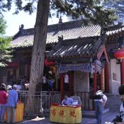 黛螺顶(寺),位于台怀镇中心寺庙群区以东,位于陡峭的半山脊黛螺顶上。黛螺顶(寺)也是人们通常所说的“小朝台”。五台山的五座台,各有一尊文殊菩萨法像,人们将转遍五座台顶,朝拜五尊文殊菩萨像称为“大朝台”。但要做到“大朝台”,需要较强的体力和充足的时间。黛螺顶把五座文殊菩萨像复制塑造后,集中在一起,来到这里朝拜了五座文殊菩萨像,等于转遍了五座台,所以叫“小朝台”。