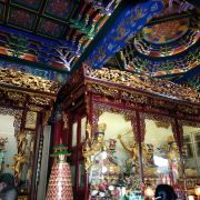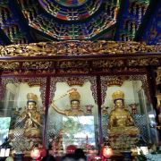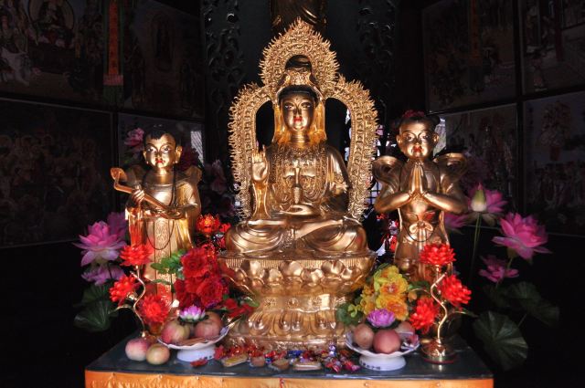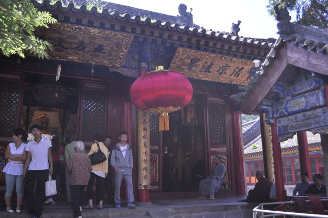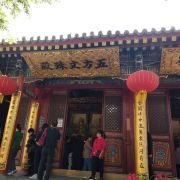 黛螺顶主殿-五方文殊殿,供奉着集五座台顶五种文殊法像于一殿的五方文殊铜像,神态各异,庄严祥和;来殿朝拜,称为“小朝台”,颇受因故不能大朝台的信徒及游客的膜拜。
