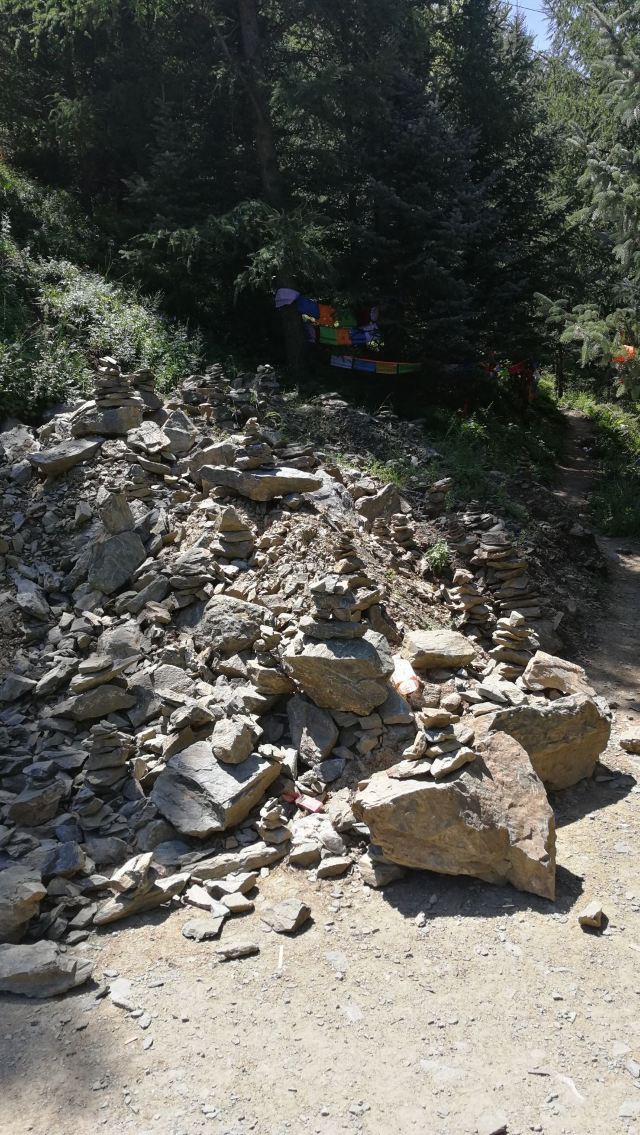 在黛螺顶上,遥望四周,你能看到南、西、北、中四台和台怀镇中心区的众多庙宇,如:塔院寺、菩萨顶、显通寺和万佛阁(五台山风景名胜区)等。 距离黛螺顶下方几十米处(登大智路时经过这里),有一座寺庙“上善财洞”,是善财洞的另一部分,上善财洞里面有一处“尸陀林”,是一座很大的墓地,里面埋葬了很多在五台山出家的僧人。