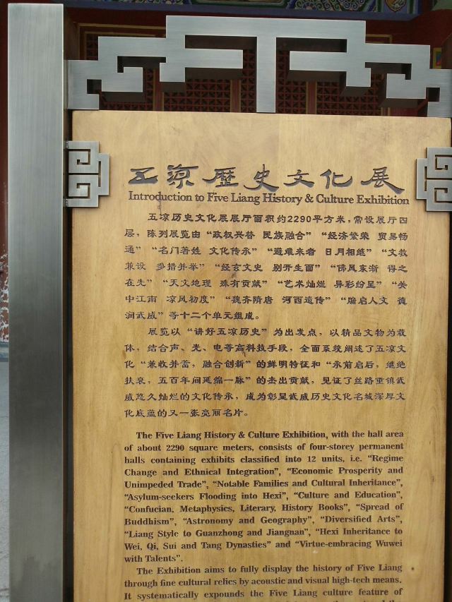 武威市五凉文化博物馆分为三层,馆藏文物藏品百余件,并辅以声、光、电等现代化技术,全方位展示五凉文化的重要地位和独特贡献。