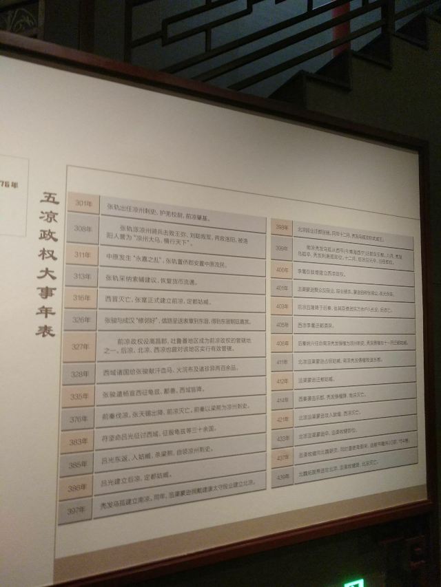 5分 超棒武威五凉文化博物馆位于武威南门楼上。“五凉文化”,指建立在今甘肃西部的五个割据政权——前凉、后凉、南凉、北凉和西凉这五个政权在其发展阶段所创造的文化,是最具代表性的武威历史文化,在中国文化史上占有重要地位。武威是五凉文化发祥地的中心都城,河西走廊是五凉文化酝酿、衍生、形成并发展的核心地带。五凉历史文化展基本陈列面积2290平方米,共分三层,共展出“五凉”及同时期的文物藏品,并辅以声、光、电等现代传媒技术,通过“政权兴替、民族融合”、“经济繁荣、贸易畅通”等十二个单元,全方位、多角度展示了五凉历史文化在中华文明“多元一体”历史发展进程中的重要地位和独特贡献。走进武威市五凉文化博物馆,历史的大幕便徐徐拉开,战马、戈矛、驰骋沙场的将军以及隐入尘埃中的故事都在滚滚硝烟中翻腾起来,千年以前的河西大地传唱千年的经典,无法复制的壮阔扑面而来。