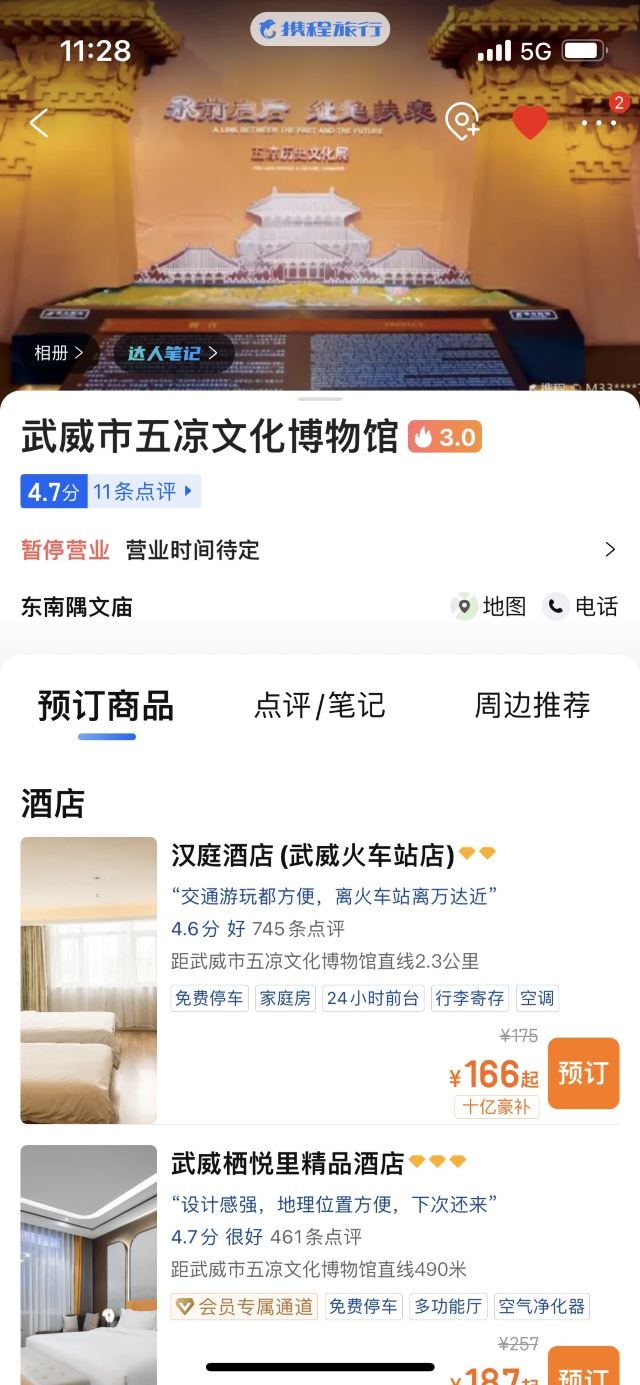 5分 超棒最后一张照片,携程网上武威市五凉文化博物馆暂停营业,我去武威南城门楼,看到是开着的,先登记,再凭身份证入内参观。