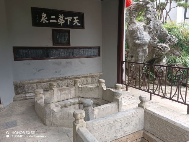 唐代著名的“茶圣”陆羽,曾品天下泉水20种,认为庐山康王谷洞帘水为第一,无锡惠山新泉为第二。继他之后,刘伯刍曾言:“水之宜茶者七:扬子江中泠泉第一,惠泉第二,虎丘第三……”。由陆、刘两位品茗专家品的惠山泉均列第二,可见其不同凡响。从此以后,历代均有名人来此游赏,唐代诗人李绅称其为“人间灵液”。宋徽宗御题“源头活水”,且誉为贡品,“月进百坛”。苏东坡慕名多次品泉,题诗“独携天上小团月,来试人间第二泉”。明代著名画家文征明,与友人茶会于惠山, 兴会所致挥毫作了《明文征明惠山茶会图卷》这一珍贵画卷,现珍藏故宫博物院。但惠山泉的出名,显然不仅仅是泉水本身,每年秋季阴历七月半的晚上,一轮皓月就会倒映在池中,称之为“二泉映月”。近代盲人音乐家瞎子阿炳据此创作的《二泉映月》名播天下,抒发了人们对美好生活的无限憧憬。1985年,此曲在美国被灌成唱片,并在流行全美的十一首中国乐曲中名列榜首,成为美国接受的一首中国音乐。日本著名指挥家小泽征尔曾说过,“这首歌是要跪着听的”,可见它的魅力之大。