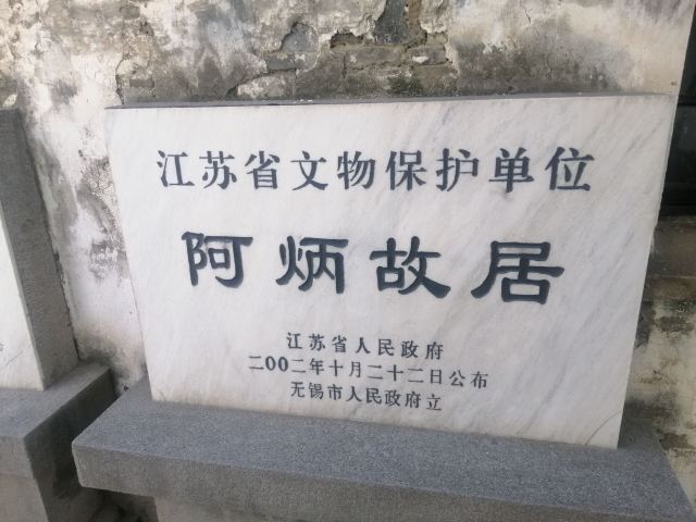 在无锡县图书馆旧址前有盲人阿炳拉二胡的塑像,二胡名曲《二泉映月》便是他创作的,一旁还有需付费参观的阿炳故居。