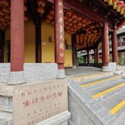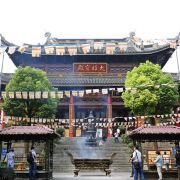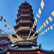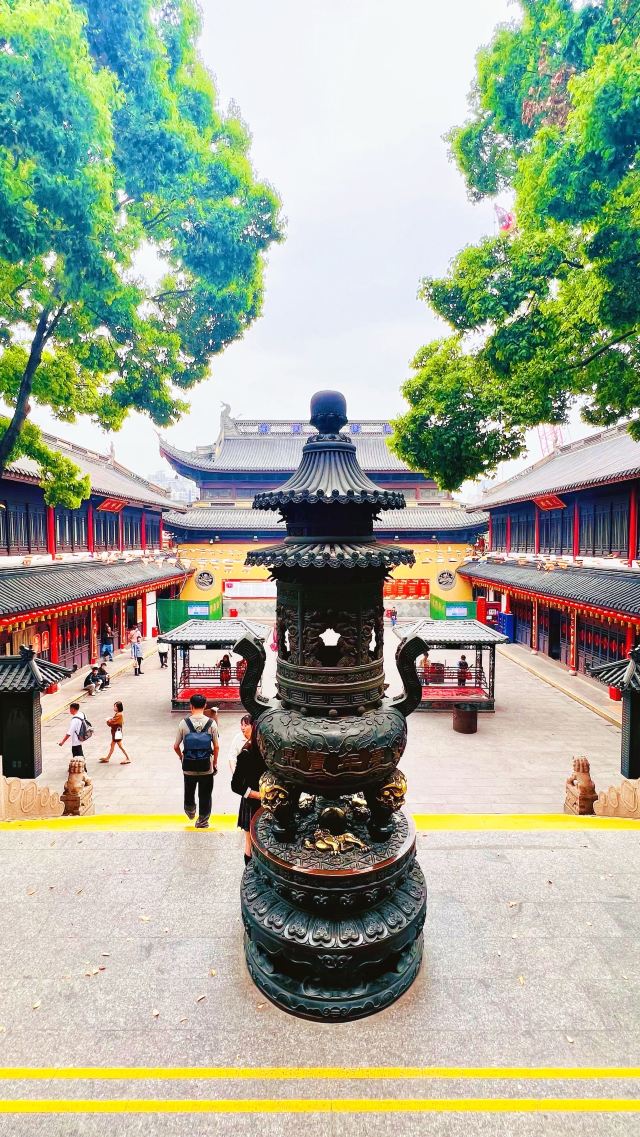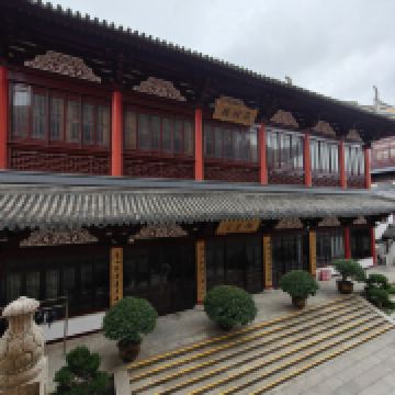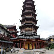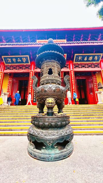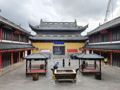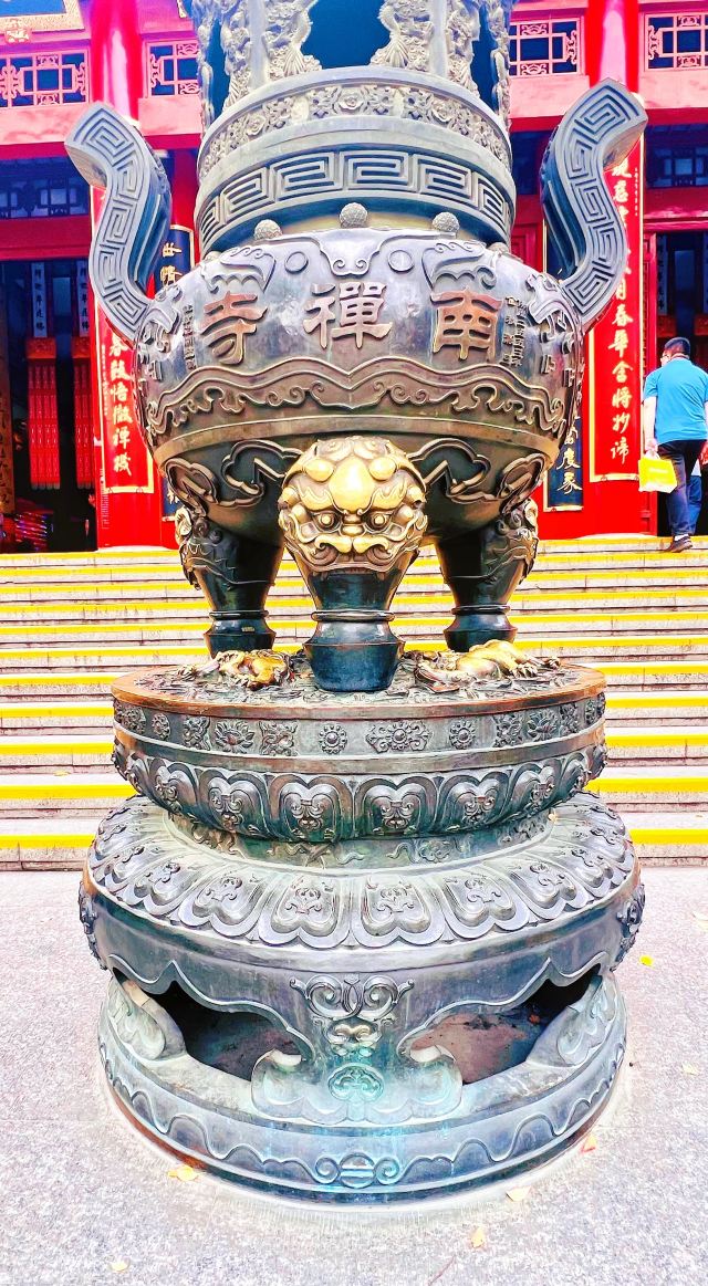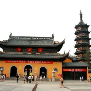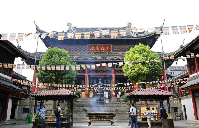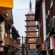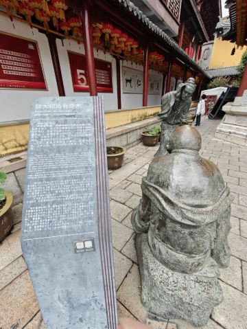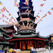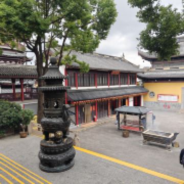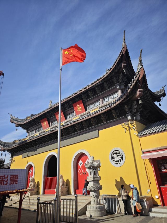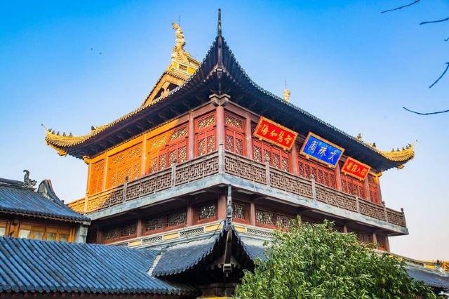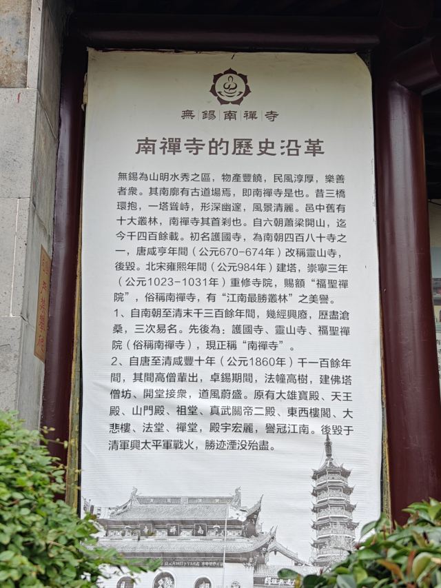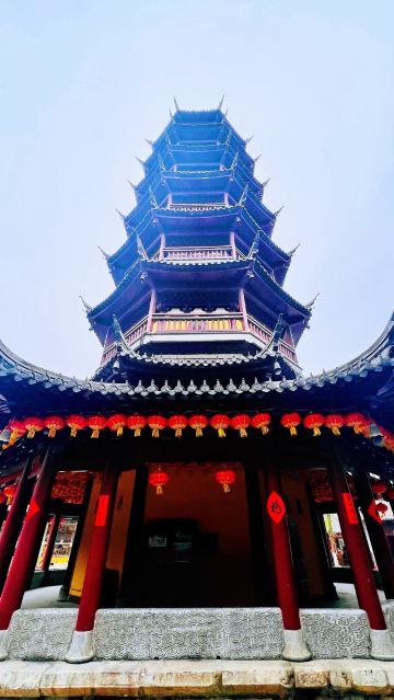 寺庙的大门在南端,南北走向的中轴线上仅有大雄宝殿等几座建筑。东侧的妙光塔高7层,在塔上看底下仿古建筑连成一片的屋顶,眺望南边古运河畔的南禅寺码头,依稀有一幅古运河画卷在眼前展开的感觉。寺庙大门东侧的素食馆有素斋吃,可以点外卖带走。