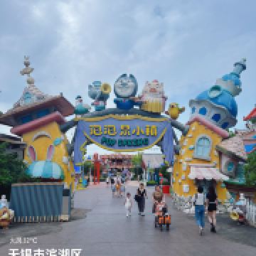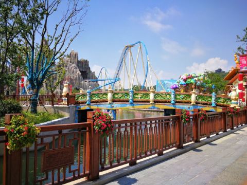 室外无锡融创乐园由运河人家、泡泡泉小镇、霞客神旅、蒸汽时代、田园欢歌、冒险港湾六大区域构成,是一座以江南文化为主题的现代乐园。除了丰富多样的游乐设备,乐园内还设有5个演艺剧场,2个室外剧场(含大湖秀),1场花车巡游,9大氛围点烘托,餐厅、主题商店遍布其中,全方位满足游客各类需求。