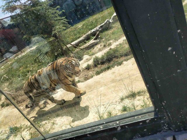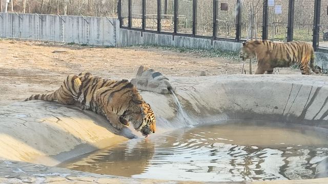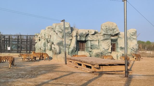 最有趣的要数猛兽区。乘坐特制的观光车,近距离观察老虎、狮子威风凛凛的模样,它们时不时走动、吼叫,那场面,刺激又震撼。想拍照的话,别着急,等动物们摆出“帅气姿势”,咔嚓一下,大片就到手。这里不用额外付费,只要买了门票就行。