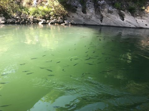 ③溪中的鱼分2种:大的是红眼鱼,小的俗称“小白条”,后者长不大。野生鱼已被严格保护,禁止捕鱼钓鱼。
