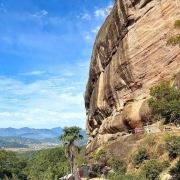 登山路径约30分钟,后半段需攀爬陡峭石阶及崖壁铁链,适合喜欢轻度探险的游客,途中竹林和岩壁景观颇具野趣。