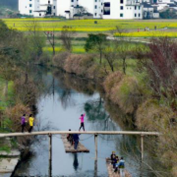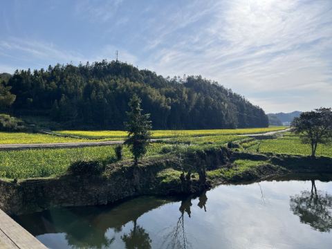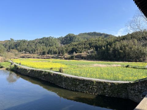 靠近景区入口的是延村,思溪村则更远些,大概要走2公里左右,可以在入口坐景区的观光电瓶车。游人通常坐车到思溪村,而后边走边逛,慢慢走回延村。两个村子间有片很大的油菜花田,但逢春季油菜花开,美不胜收。