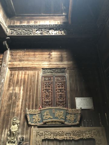 简单看过敬序堂。敬序堂门侧是简朴的书斋,前有大花园,墙上有一葫芦形小龛,上面有“敬惜字纸”四字,可见古代对文化的尊重。二层的木雕戏剧人物、山水鸟兽兼备,可惜的是大部分木雕人物的头部已经毁掉了。另外值得一提的是,敬序堂是《聊斋》的主要外景地,游人在此可回味剧中的场景。
