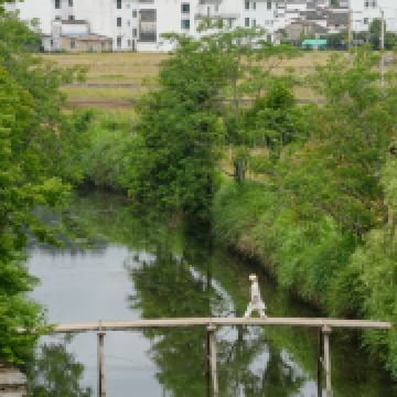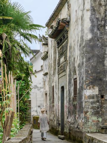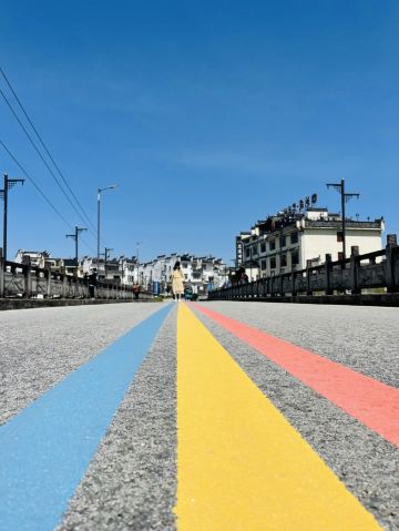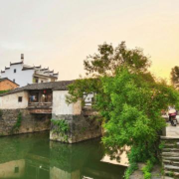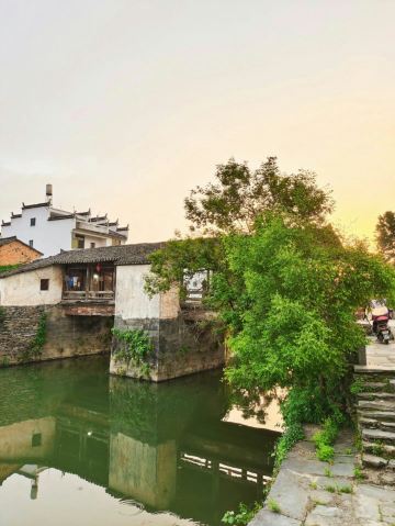 至此思溪的所有景点都走到了,走过水上的木架桥,是一个地市较高的观景台,环顾四周,远处是青翠的小山,近处是粉墙黛瓦的村子,适合拍一张很“婺源”的标准照。