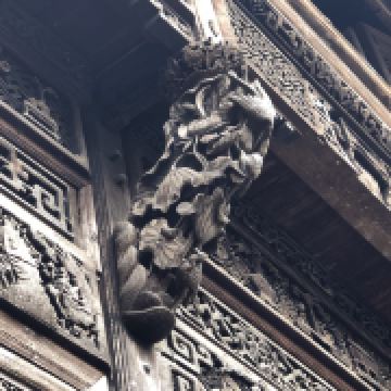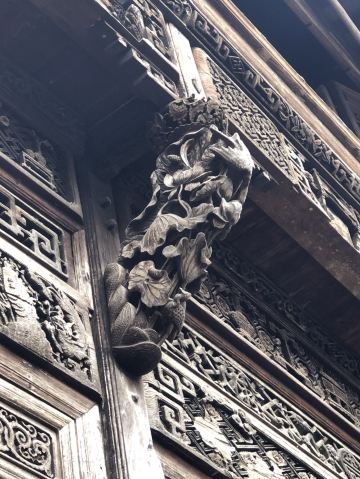 百寿花厅和旁边的继志堂、承德堂连在一起,后面依次是银库、花颐轩、七叶衍祥几个老宅,各有几处颇为出彩的雕刻可看,一些宅子的主人还在里面卖些纪念品。