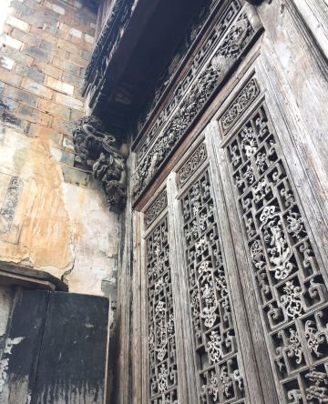 桥对面的延村是著名的商家院落群,特色当属“商”字形大门和砖雕,几乎每个宅院的门楼都是一个“商”字,高楼高墙,颇有气势。延村的几个主要宅院分布大致是一个环形,逆时针走依次是余庆堂、笃经堂、训经堂、聪听堂、明训书堂、留香闺楼等。大概半小时至一小时就可以走完。