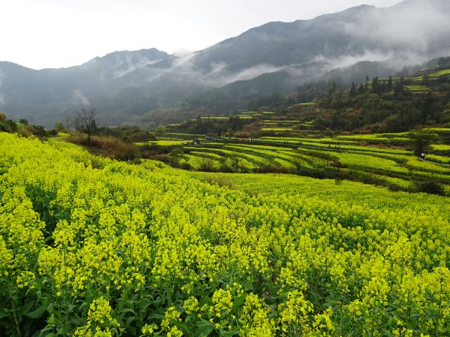 婺源素以赏油菜花胜地而闻名,三月中下旬是油菜花盛开的季节。站在江岭村的梯田高处,或月亮湾河畔,将一望无际的金黄色尽收眼底。还有庆源、上下晓起、汪槎村、官坑村等村落也是观赏油菜花海的好地方。