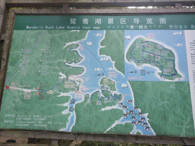 鸳鸯湖位于赋春镇,和文公山一样,是婺源西线景区之一,包含在婺源风景区通票内。这里是野生鸳鸯越冬栖息地,又因为鸳鸯本身的爱情寓意,景区内也建起了爱情长廊之类的人造景观来烘托浪漫氛围。不过,相比之下,依然是自然景观更加夺人眼球,适合观鸟拍照。景区面积不算大,走走逛逛很惬意。进入景区大门便是一条四五百米长的水泥道,走到底便能看到鸳鸯湖的水面。秋冬季节,能看到成对的鸳鸯在湖中嬉戏,一些摄影爱好者会带着长枪短炮来拍鸟。若在其它季节前来,也能看到一些景区内人工养殖的鸳鸯。湖中的游船是值得体验的项目,除了乘船欣赏鸳鸯湖的湖光山色,还能登上湖中的小岛(30元/人)。岛上有座“月老祠”,是标志性建筑。祠前有一个巨大的同心锁,不少善男信女在旁边挂上小同心锁以求吉利。