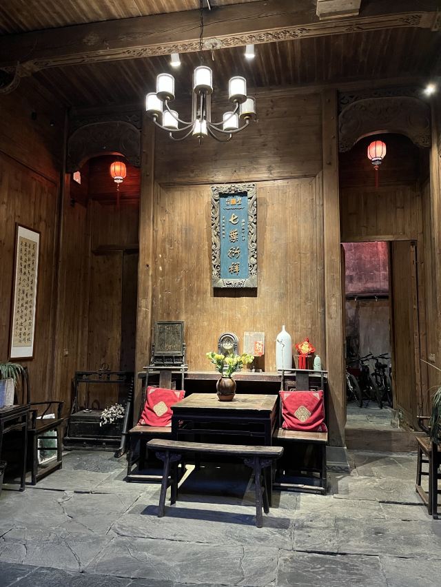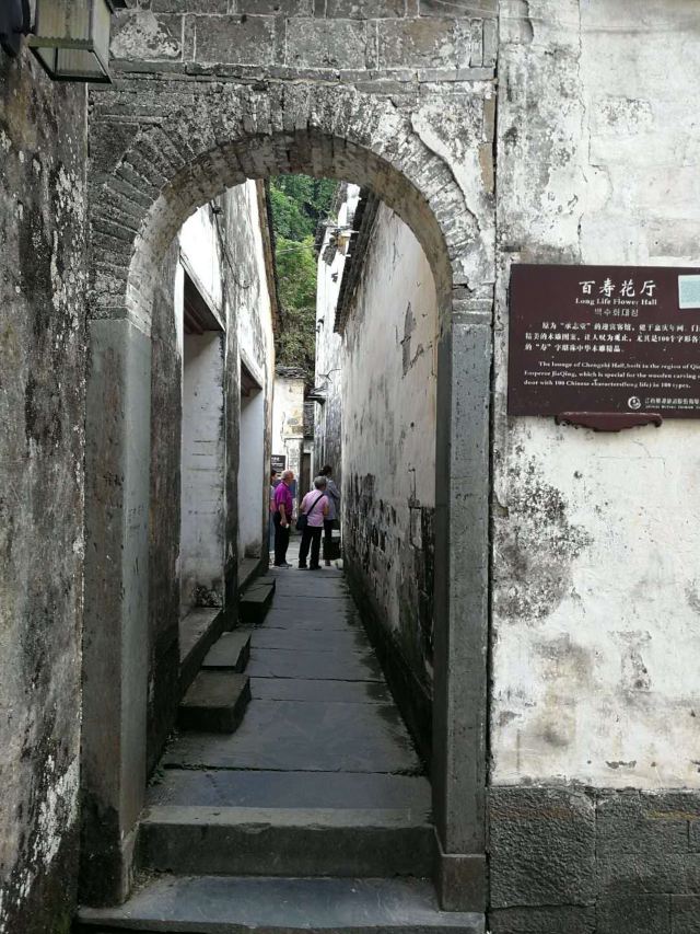 思溪是思溪延村景区内的其中一个村落,保存有不少明清徽商的豪宅院落。其中百寿花厅中由96个不同字体的“寿”字组成的罕见的“百寿图”,以及1987年版《聊斋》的主要外景地敬序堂,都是不容错过的精品。村口有一座木制的廊桥,名为“通济桥”。往村中走不远,过了振源堂就来到了百寿花厅。屋内96个字体各异的“寿”字刻在12扇落地长窗的窗格上,这种规模的百寿图镂雕在民间是非常罕见的,十分值得一看。屋檐下的牛腿也不是常见的狮子麒麟,而是闲雅的荷塘月色,伸嘴捕鱼的白鹭、盛开的荷花、肥硕的莲藕,别出心裁。村中气派也出名的商宅是“敬序堂”大屋,由庭院、正厅、后堂、花厅、厨房及花园组成。值得一提的是,敬序堂是《聊斋》的主要外景地,剧迷们可以在此回味剧中的经典场景。