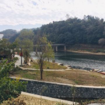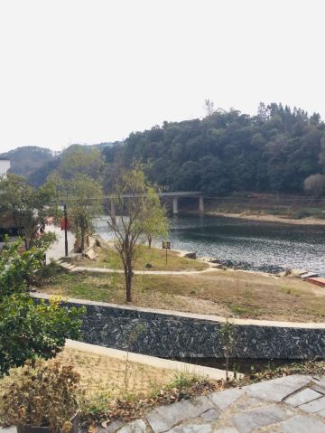平渡堰漂流码头也在这附近,可以坐上竹筏一路漂流回入口附近的西关大桥。而如果由东关大桥走到对岸,你会发现有一条游步道通向山上。这边游人非常少,山上有不少古树,尽可以享受大自然的清静。往山下看,是永川河碧绿的河水,和水面上点缀着的竹筏,对面青瓦白墙的古村落也尽收眼底。这样一路走下山便也回到入口了,而且不用走回头路。