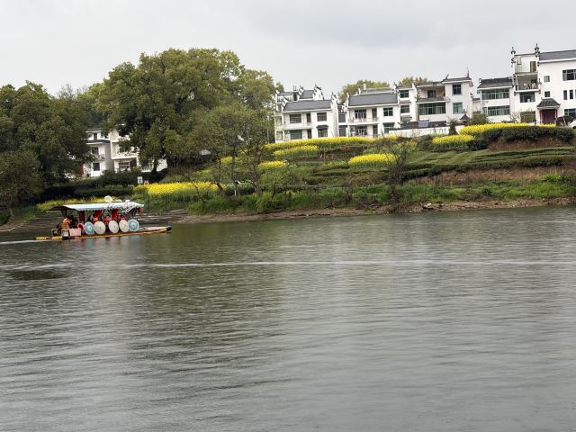 从亮点来看,月亮湾的自然风光堪称一绝。其因河中央有一形似弯月的沙洲而得名,从观景台俯瞰,一湾湖水如弯月静卧水面,翠绿的湖水与袖珍的小岛相互映衬,静谧而美丽。清晨时分,江面薄雾缭绕,竹筏若隐若现,远处黛瓦白墙的古村落炊烟袅袅,宛如一幅绝美的水墨画。春日里,周边金黄的油菜花与翠绿的茶园盛开,更是将这里装点得绚丽多姿。此外,月亮湾还是免费景点,性价比高,且距离婺源县城较近,交通便利,适合作为旅行中的过渡景点 。