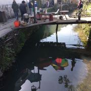 虽然没有江岭的气势,庆源自有一番小家碧玉的滋味,村口有一块块的油菜花田,村内小桥流水,风景清新宜人。村子不大,依然保留着原始质朴的乡村气息,比较安静。村内只有几家小客栈和小饭馆,商业气息不是很浓,游客也较少,大部分都是来摄影写生的人们。村口的查记酒坊是一家文艺范儿的小酒吧,可以尝尝里面的猕猴桃酒。