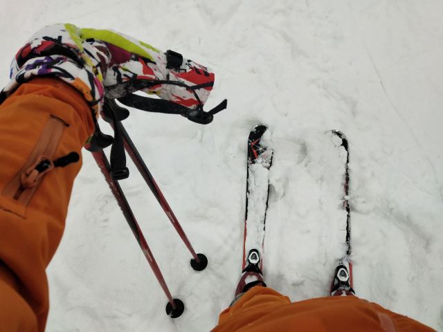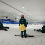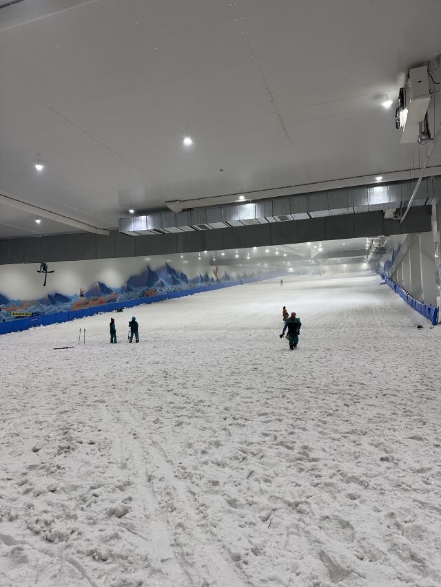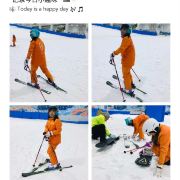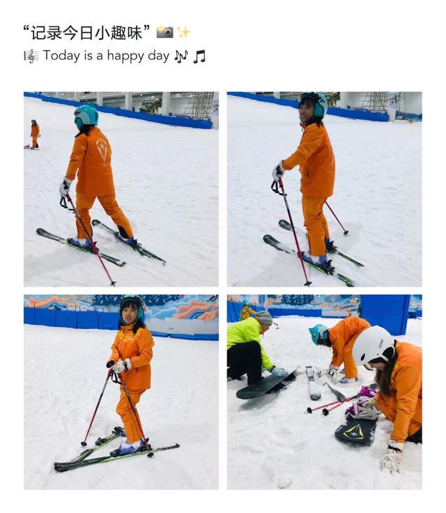 我们觉得请教练太贵,没请,提前看一下如何滑雪减速的视频,前1小时走上三分之一的滑雪坡练习,后2小时坐魔毯上顶部滑下来。