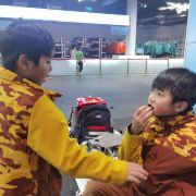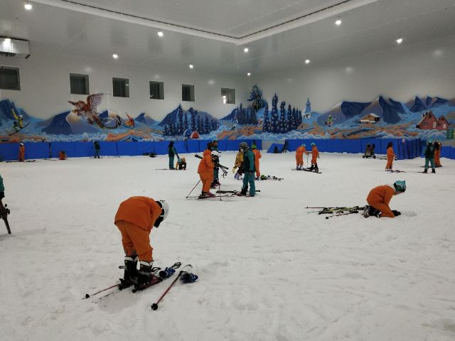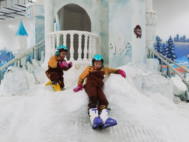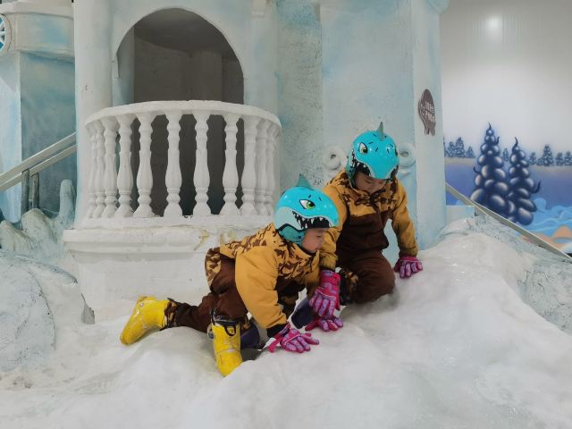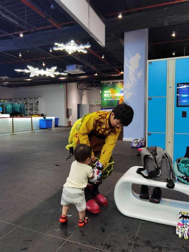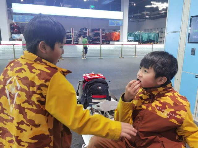 3)大人小孩都带多件厚衣服,穿滑雪服前就穿上。可以先穿好滑雪服裤子,等到领取滑板后,才穿滑雪服的衣服,不然很热。