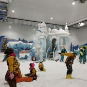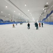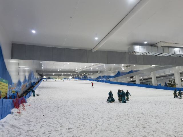 启迪鸿星梧州雪立方冰雪世界总体用地38832平方米,规划建筑面积25015平方米,设备采用世界较先进的专用室内吊顶式造雪机,雪质量相似度>百分之95;,馆内温度长期控制在零下3度、0.5米厚积雪。冰雪馆分为滑雪区,戏雪区及服务功能区:其中滑雪区由平台、坡道及缓冲区组成;戏雪区由冰雪精灵城、戏雪城堡、梦幻迷宫、冰滑梯、全息数字互动等组成。