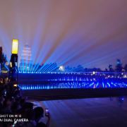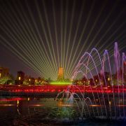 而60米宽、20余米高的大型激光水幕中4台喷泉从水里喷出,在6米高空充分燃烧低温爆开,更增加了整个喷泉的夺人气魄。
