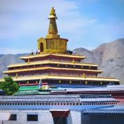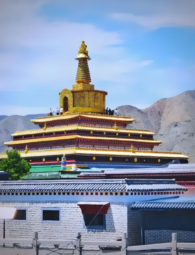5分 超棒贡唐宝塔是拉卜楞寺的标志性建筑,宝塔呈在阳光下漂亮耀眼。