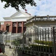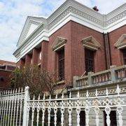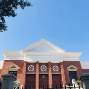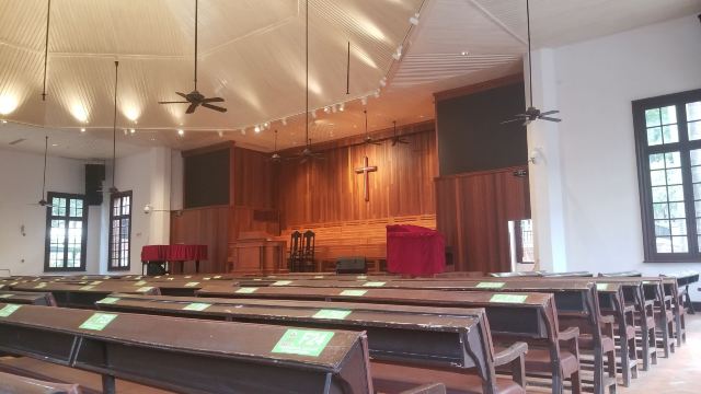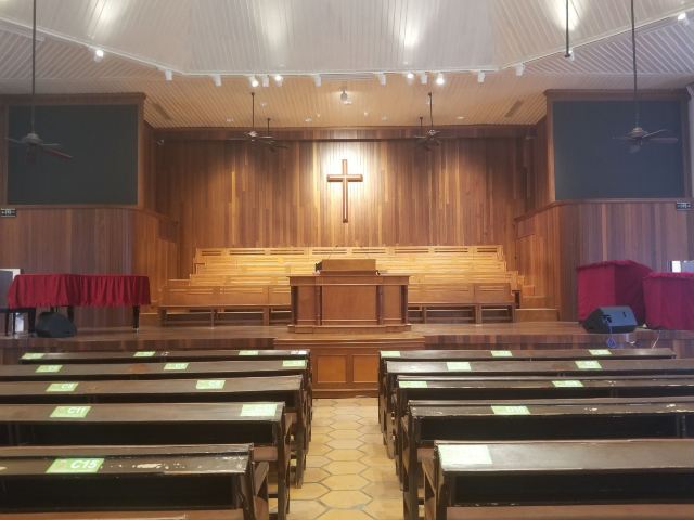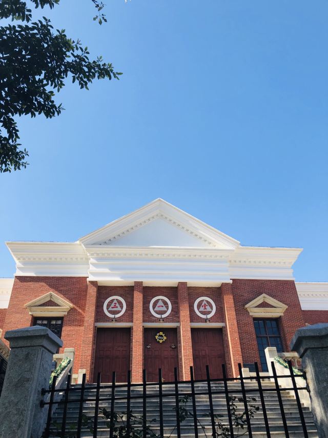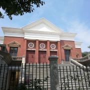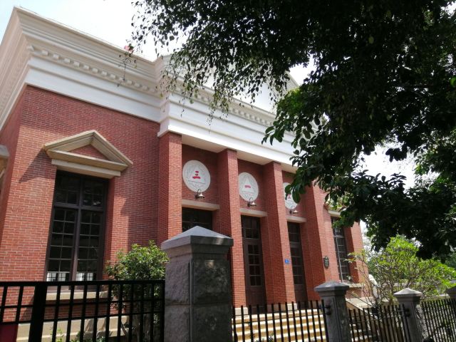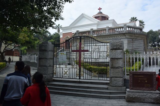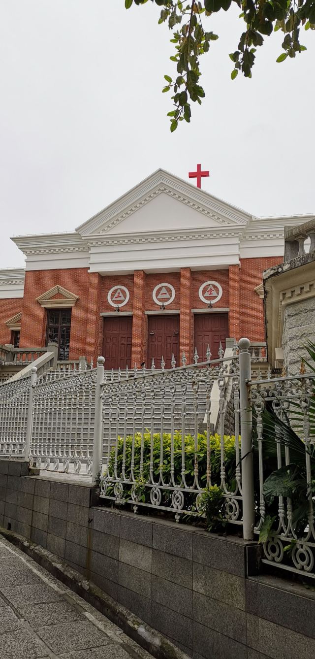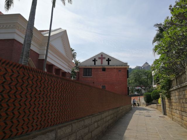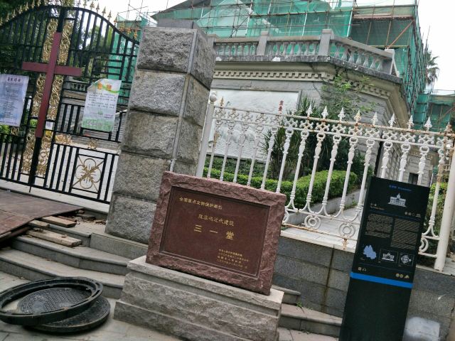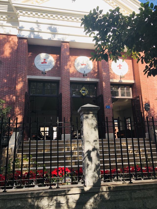 “三一堂”是一座教堂,它是一座粉红色的砖墙建筑。每一面都有山墙,山墙下边由方柱分成三道高达3米的大门,两边各有一个窗。不大的教堂外观显得很漂亮,很值得来看下。