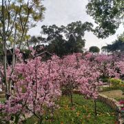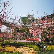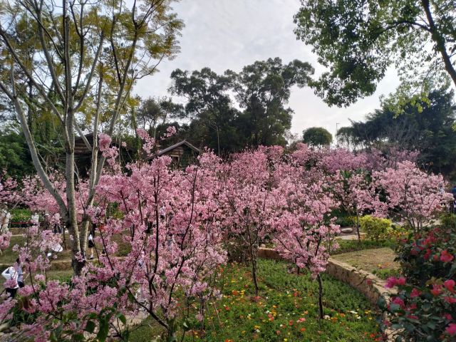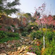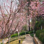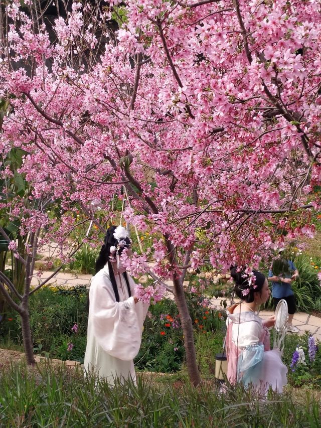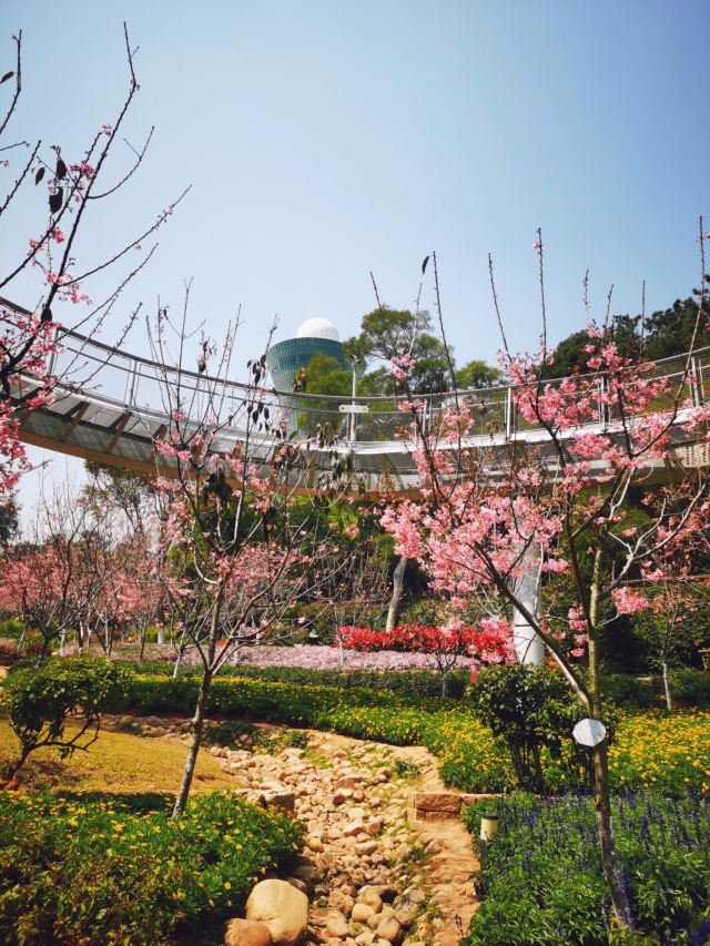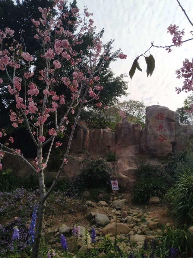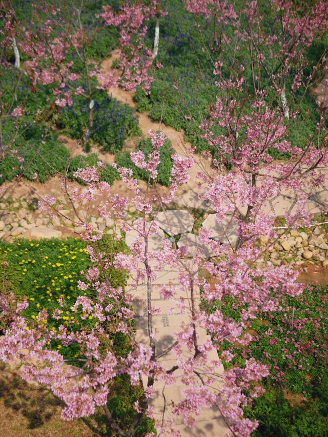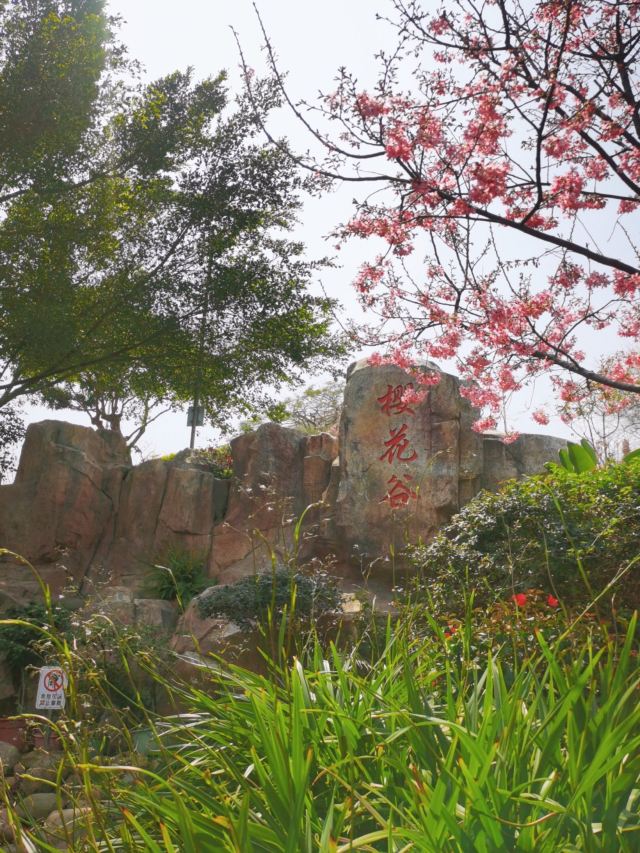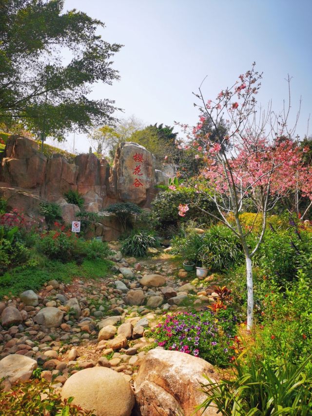 💋樱花谷位于狐尾山上靠近山海健康步道东渡一侧,在气象塔附近。梯田状的规划错落有致,小墙、石头路、假山、旱溪带来浪漫的田园风,很有立体感和层次感,当然这里最靓主角当属漫山遍野的樱花👀。
