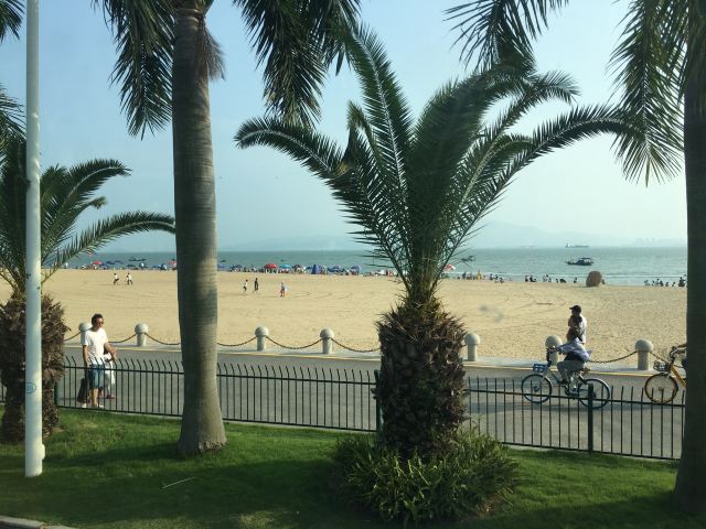 先上阳台,天气很热。但是这里面向沙滩,风景实在是美极了。拍照以后,来到一个餐厅。这个餐厅是烧烤的,我们点了个299元的套餐,又要了一盘水饺。这里的风景,真是快赶上马代了,我们拍了很多照片。烧烤有鸡翅、羊肉串、猪蹄子等等,最后剩了一饭盒,我们打包带走。