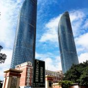 河的两岸是那种老式住宅 现在大多改成了商铺 可是一抬头 却是现代感极强的世茂双子塔楼