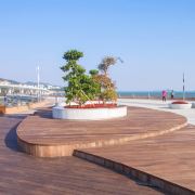 观景台建的得蛮漂亮,还有花坛和座椅,海景风光还不错。