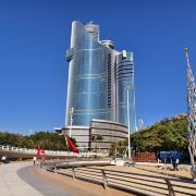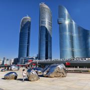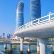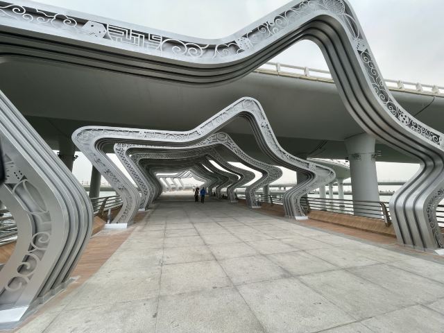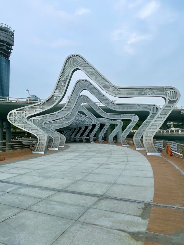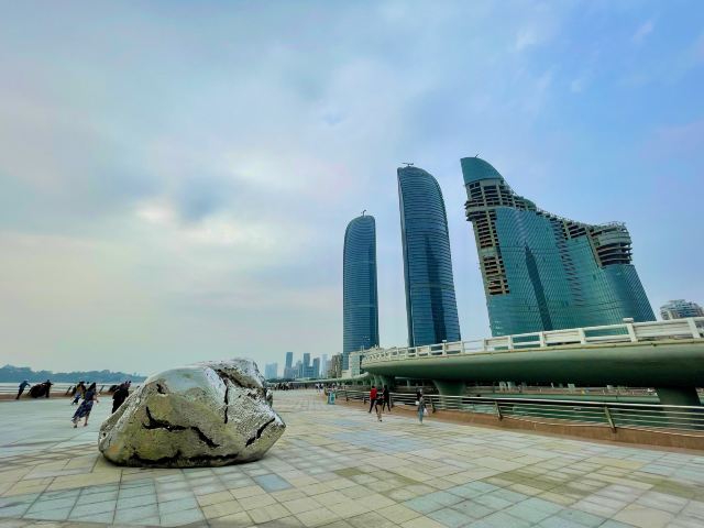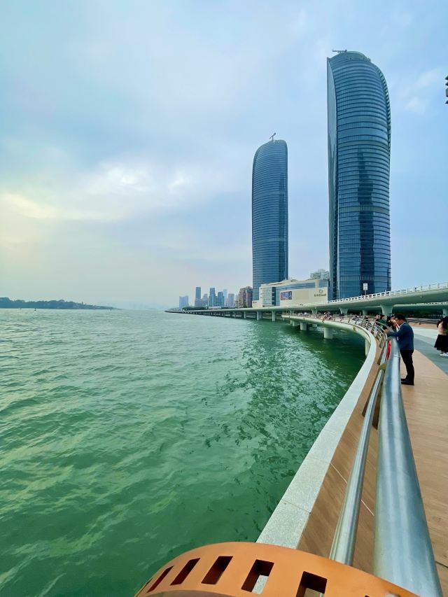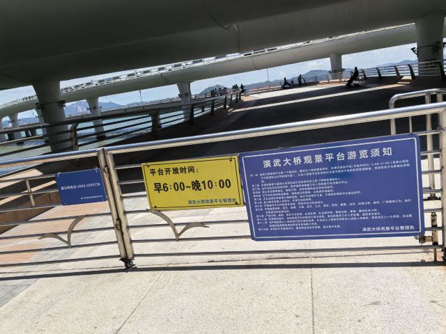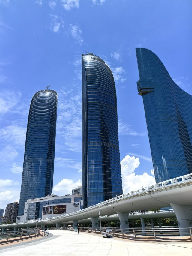 3分 不错演武大桥是看网红双子塔绝佳地点,免费开放的平台观景,平台风格是不锈钢雕塑,上面还有一些星光大道的手印,停车不方便,世贸mall地下停车场消费120元免费停车二小时