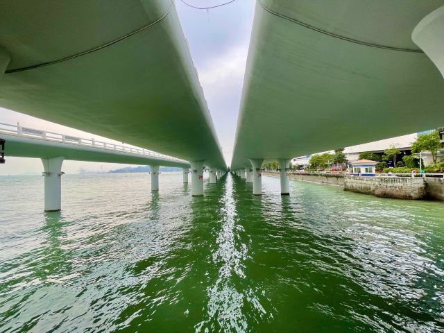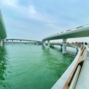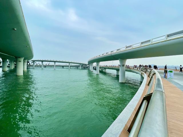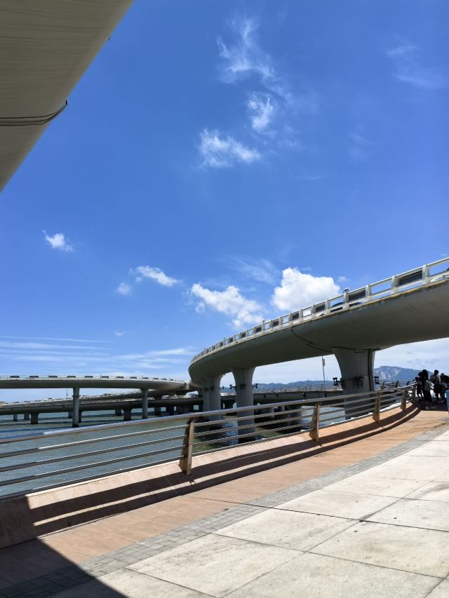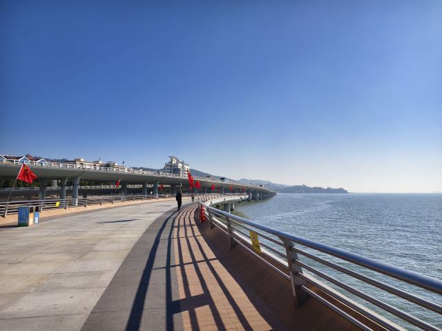 演武大桥观景平台位于厦门演武大桥内,该桥被认为是离海平面较近的大桥,由三座栈桥和一处景观平台构成。演武大桥观景平台全长约824米,总面积相当于27个标准的篮球场。其中,观海面长度约455米,宽达30余米。
