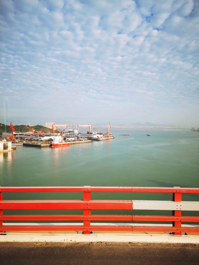 🚗最近天气很不错,在桥上可以顺便欣赏下蓝天大海的美景,好舒服。