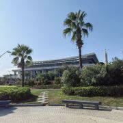 会展中心占地面积47万平方米,全部展区皆设在主楼一楼,可设2000个展位,展区分隔成5个隔段,两翼各有无柱厅,可容2000人宴会。