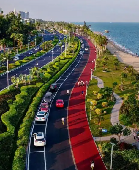 环岛路沿海而建,沿途有众多景点。走在安静的木栈道上,近处沙滩、远处的海水以及日出日落映衬着的那片海景让人难以挪步。还可以租辆自行车骑行,让海风拂面,别有一番韵味。