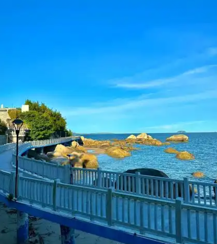 驶离主路拐向镜沙,仿佛闯入了冰岛的秘境。灰黑色的火山礁石铺满海岸,被海浪千万年冲刷得棱角分明,与宝蓝色的海水碰撞出雪白浪花,荒凉又治愈的氛围感瞬间拉满 。退潮后的沙滩露出蜿蜒的礁石洞穴,阳光穿透岩壁洒在湿润的黑石上,明暗交错间自带电影滤镜。穿一身纯色衣裙站在木栈道上,身后是奔涌的海浪与黝黑礁石,随手一拍就是自带情绪感的“世界尽头”大片。切记踩礁时穿防滑鞋,远离悬崖边缘,让这份野性之美安全定格。